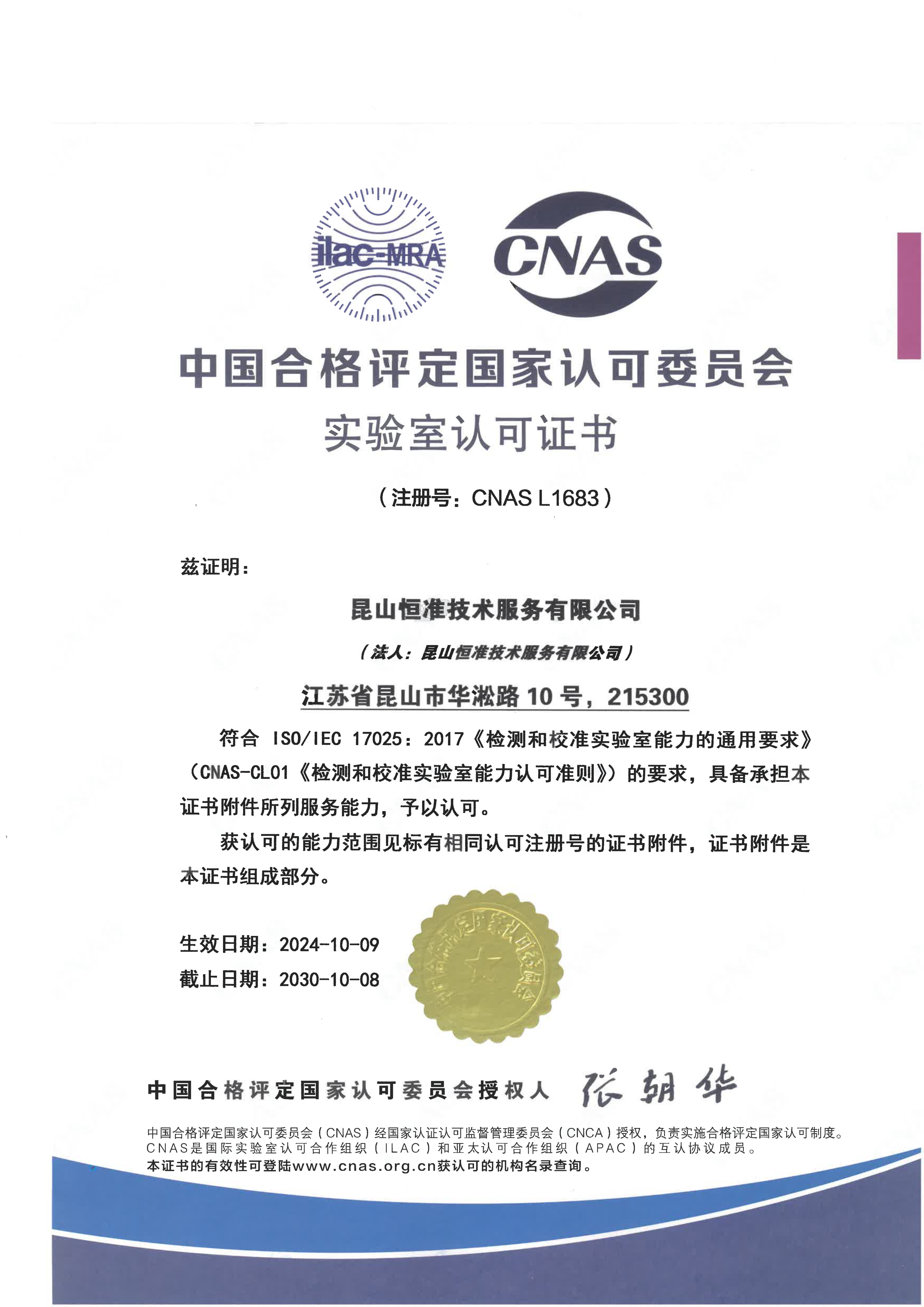 2004年10月,通過中國合格評定國家認(rèn)可委員會(CNAS)認(rèn)可(NO.L1683)